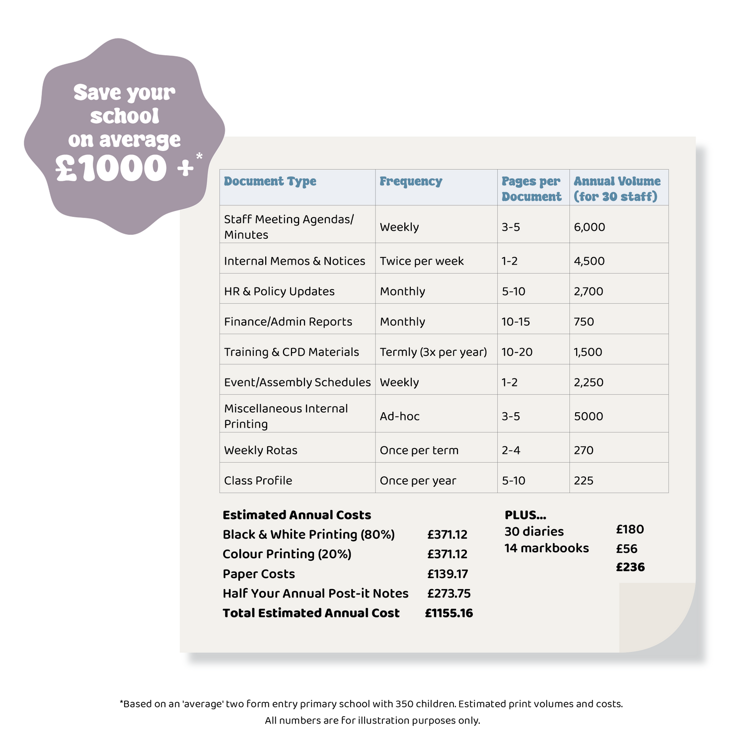 Choosing to digitise your staff's note taking can have a massive impact on staff efficiency, saving time and supporting well-being. Alongside this, the money saved can be significant; a small school saving at least £1000. Plus think of the paper saved too!
